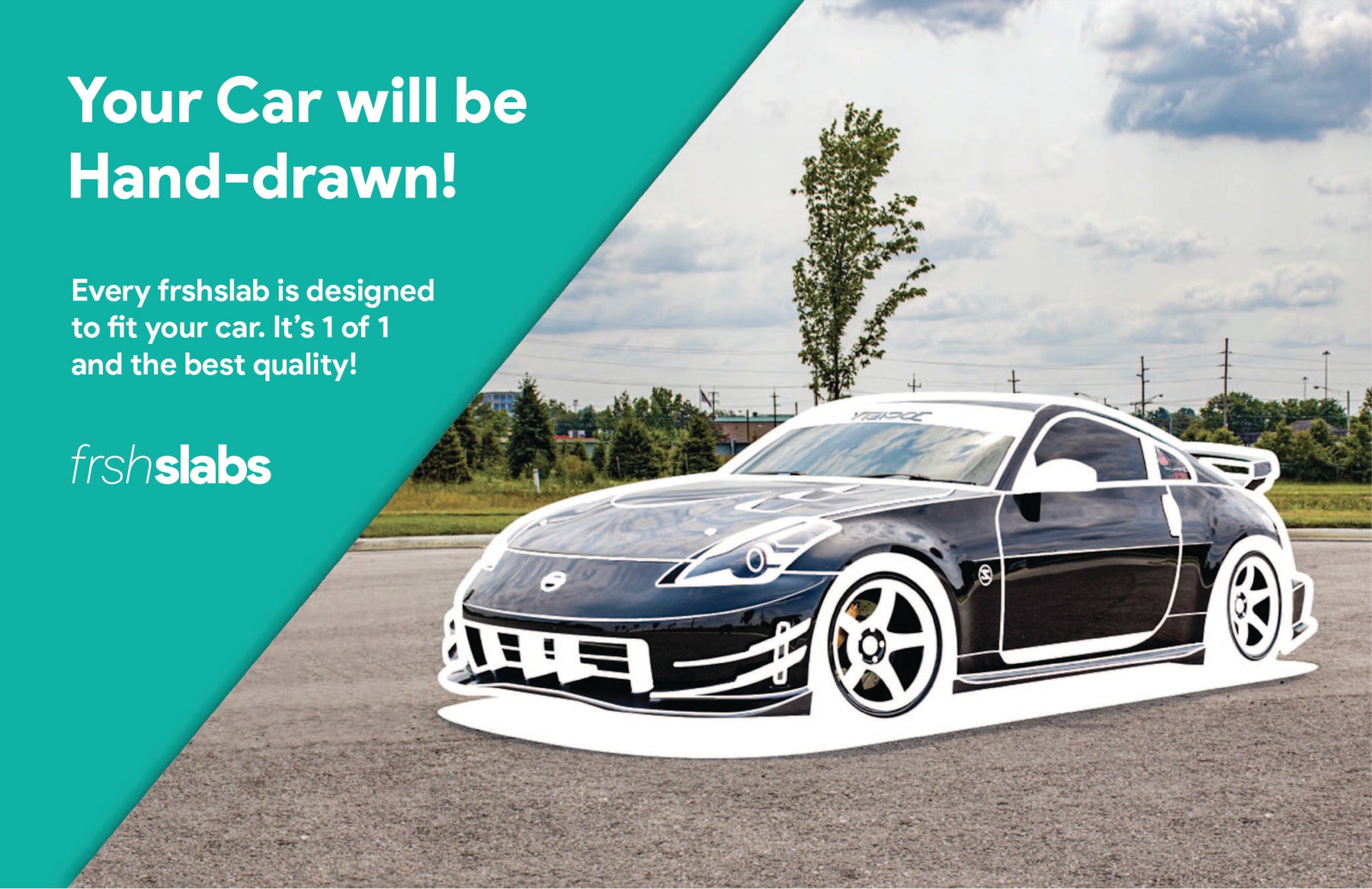 Our "Side View" option results in a silhouette of your car. Our "Image Trace" option results in an exact match of the angle at which your car is shown in your image.