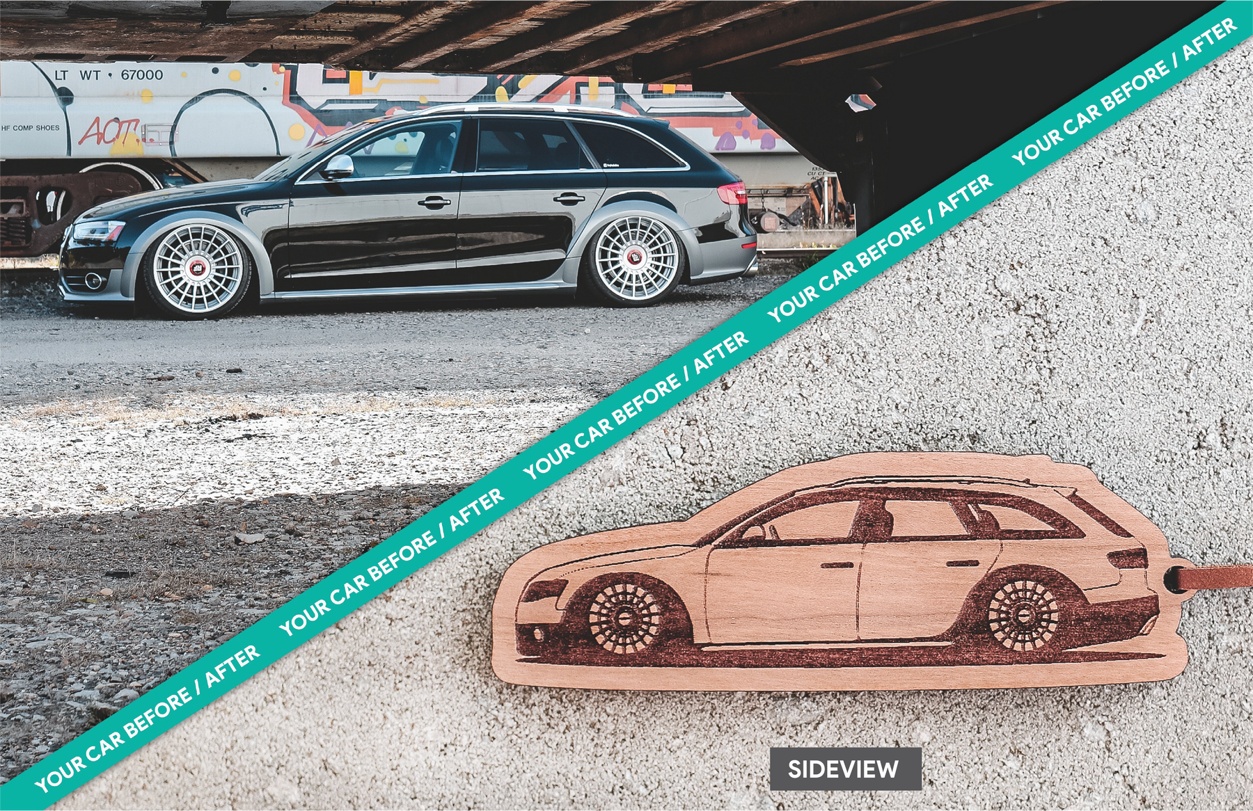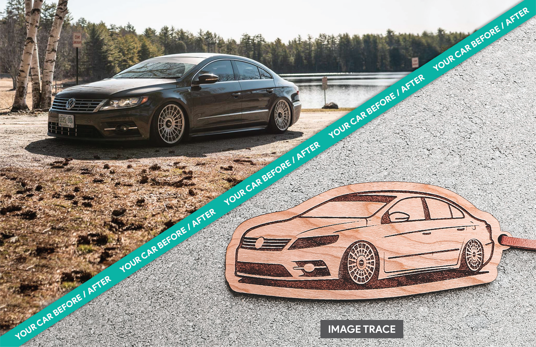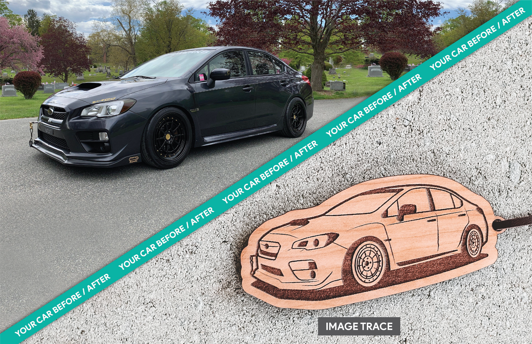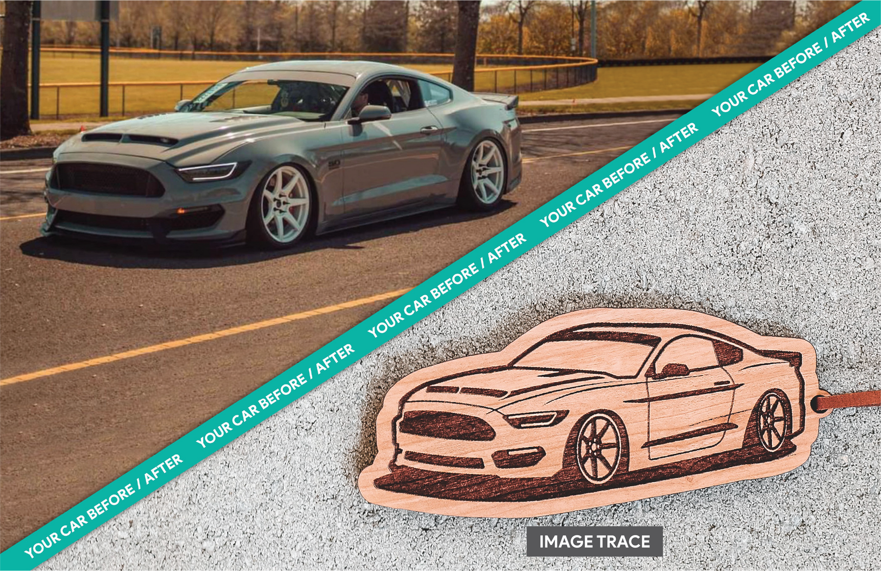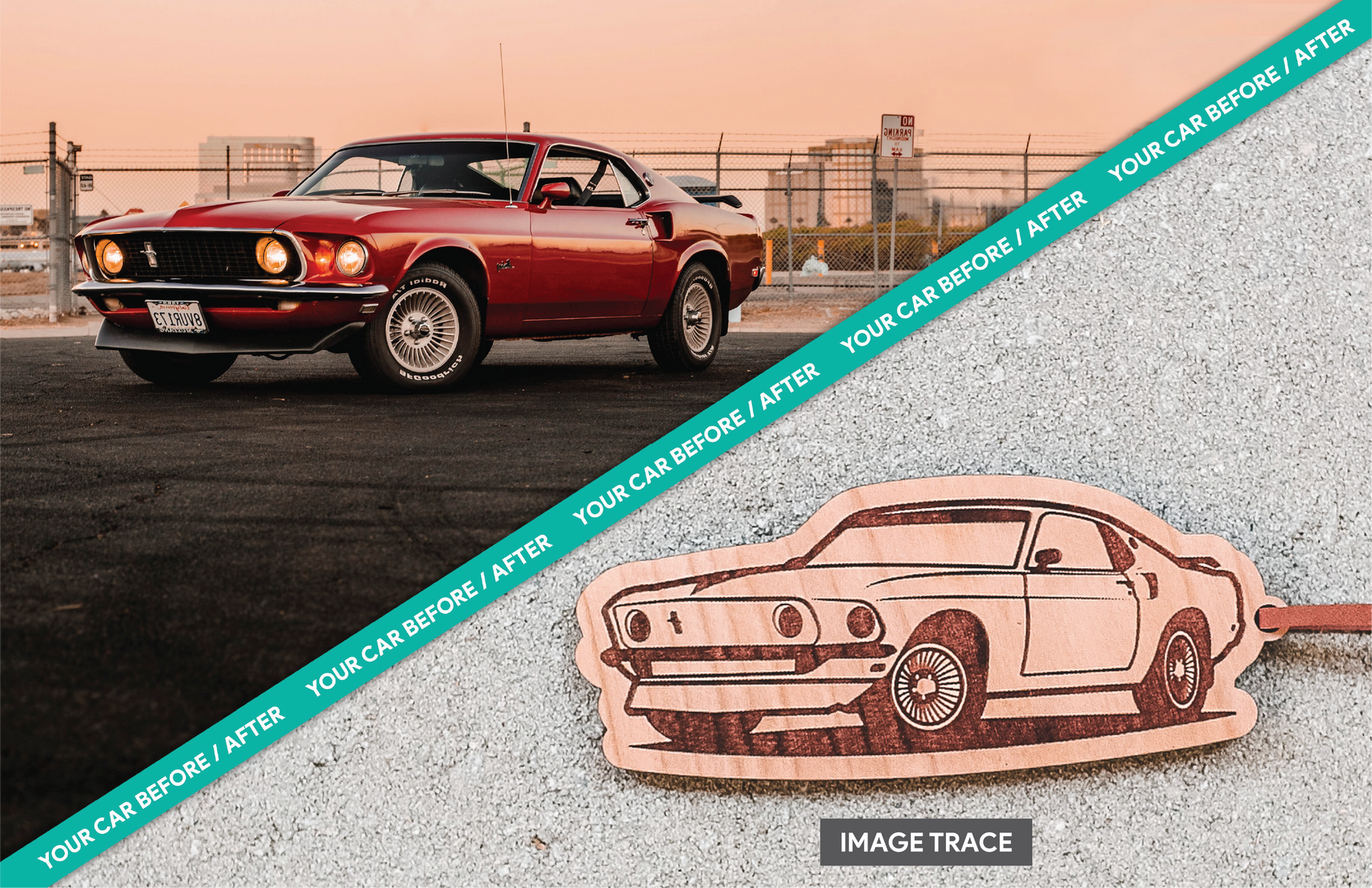 Our "Side View" option results in a silhouette of your car. Our "Image Trace" option results in an exact match of the angle at which your car is shown in your image.