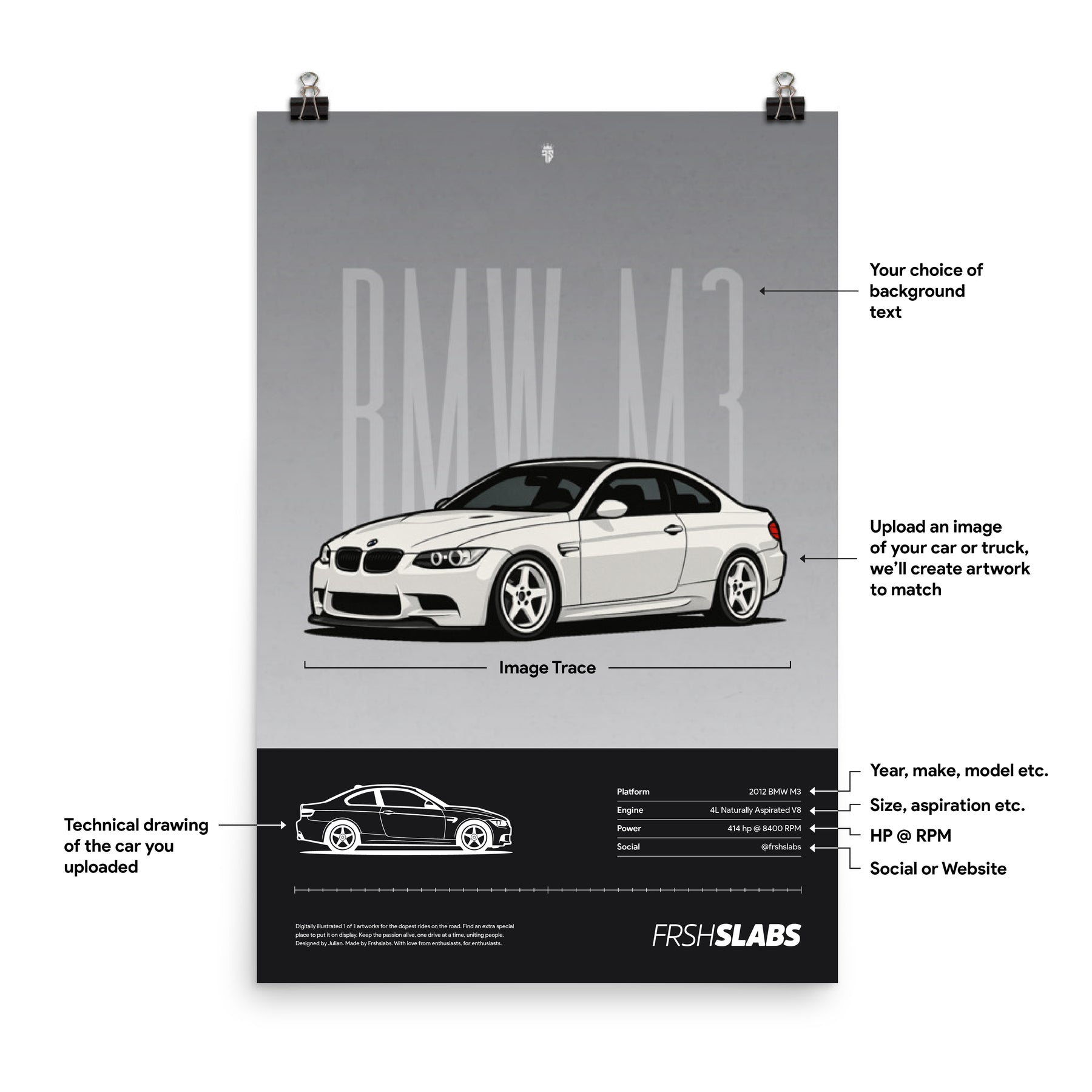 We're car enthusiasts just like you, so we know how much every detail matters. Be it wheels, aero, a new grill or headlights etc. We'll digitally hand-draw your car to the highest standard!